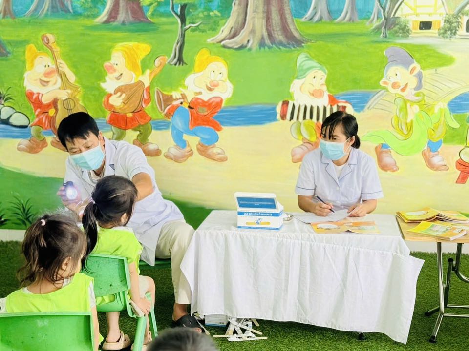 Thực hiện kế hoạch tháng 10 của trường mầm non Bình Minh, hôm nay trường mầm non đã phối kết hợp với trạm y tế xã Phù Đổng tổ chức khám sức khỏe cho học sinh toàn trường.