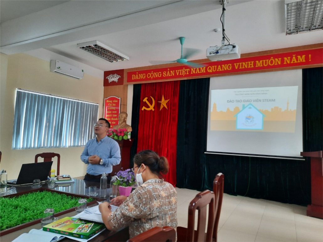 Ngày hôm nay, trường mầm non Bình Minh đã tổ chức tập huấn phương pháp giáo dục tiên tiến Steam cho toàn bộ giáo viên trong trường. Đây là lần thứ 2 nhà trường tổ chức tập huấn phương pháp này cho GV.