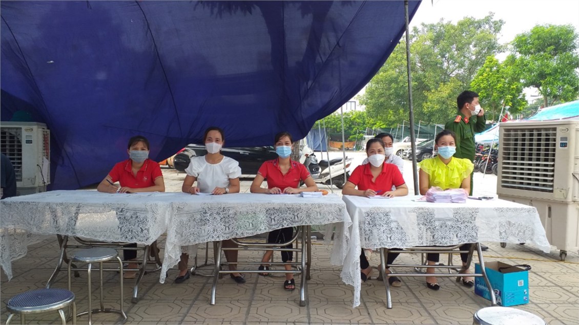 Trong những ngày giữa tháng 9 này, toàn thành phố Hà Nội đang gấp rút ngăn chặn, đẩy lùi các ca nhiễm bệnh để phục hồi sản xuất và tiến tới giai đoạn bình thường mới. Do vậy mỗi địa phương đều đang dốc toàn lực cho công tác tiêm phòng và xét nghiệm, nhằm sàng lọc các ca F0 ra khỏi cộng đồng. Với chỉ tiêu tiêm phòng toàn dân, những ngày nay, xã Ninh Hiệp huy động toàn bộ lực lượng, từ lãnh đạo địa phương, lực lượng công an, tổ Covid cộng đồng, cho đến giáo viên, đoàn thanh niên...tham gia công tác chống dịch. Góp sức với các lực lượng chống dịch của xã, tập thể cán bộ, giáo viên nhân viên của nhà trường cũng tham gia hỗ trợ. Với số lượng tiêm và lấy mẫu xét nghiệm trên 7000 người/ ngày, các CBGVNV nhà trường đã có mặt từ 6h30 hàng ngày, túc trực bên bàn ghi giấy, phối kết hợp với các lực lượng khác tuyên truyền, hướng dẫn người dân lấy mẫu và tiêm, thời gian kết thúc thường từ 20h - 21h hàng ngày.