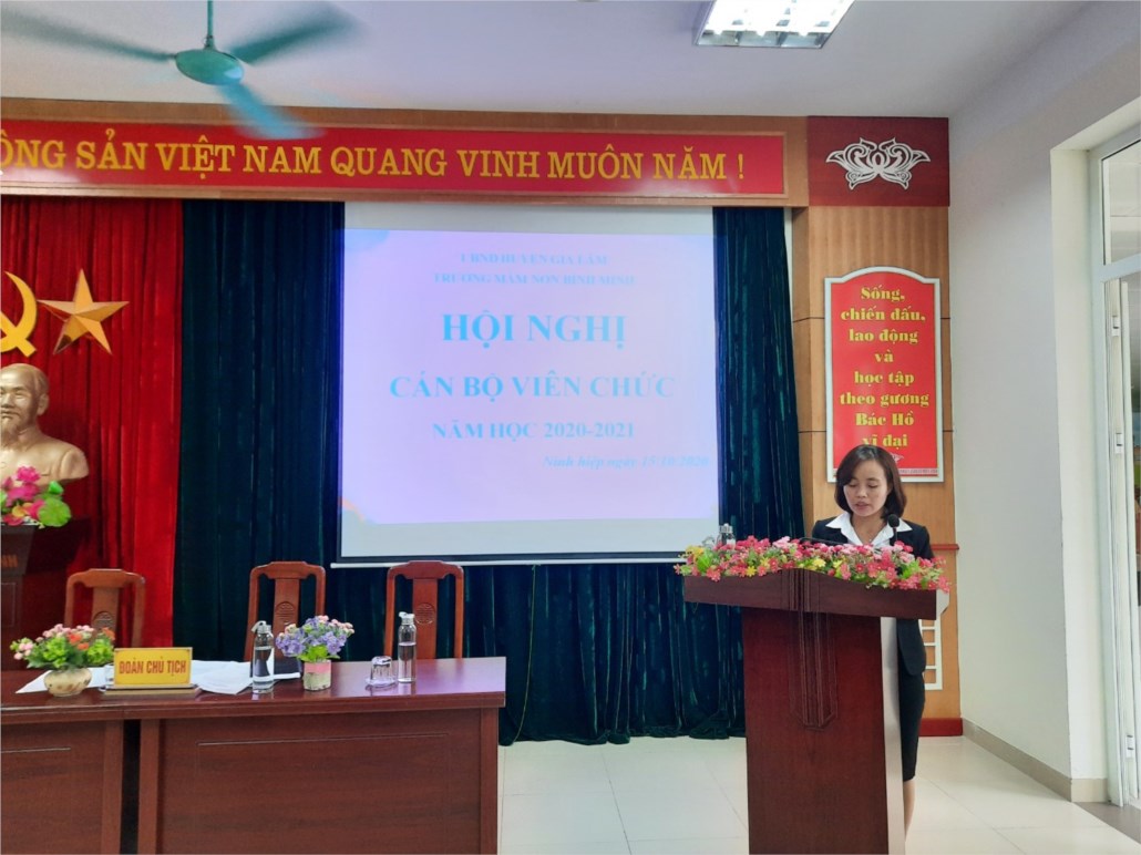 Hội nghị cũng được nghe đồng chí Phạm Thu Hằng - phó hiệu trưởng - chủ tịch công đoàn báo cáo kết quả hoạt động công đoàn năm học 2019- 2020 và phương hướng hoạt động năm học 2020 - 2021.